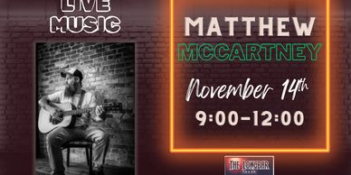 Don't miss out on local solo artist Matthew McCartney! We are so excited to welcome him to Longbar!